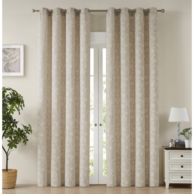 CORTINA DECORATIVA DE JACQUARD CON MOTIVOS FLORALES.