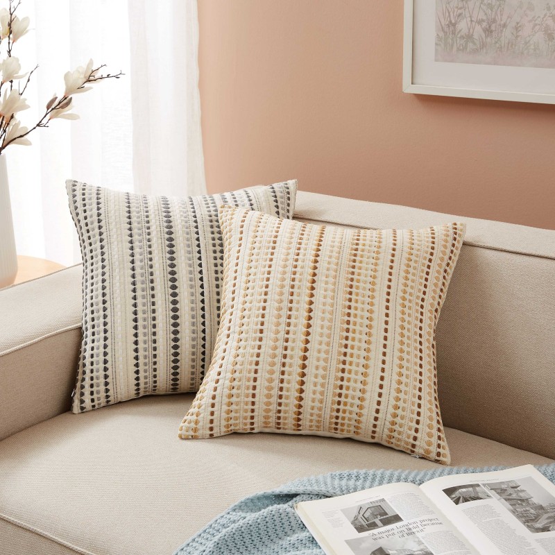 FUNDA DE COJÍN DE ESTILO BOHO PARA CAMA, SOFÁ Y EXTERIORES, CON DISEÑO DE LÍNEAS EN RELIEVE, QUE APORTAN UNA TEXTURA ELEGANTE Y MODERNA. EL TEJIDO ACOGEDOR LA CONVIERTE EN UNA PIEZA CLAVE PARA DAR PERSONALIDAD A TU ESPACIO.