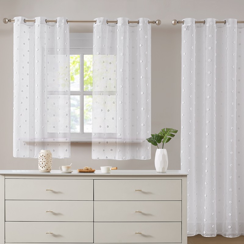 VISILLO COCINA IMPRONTA "POMPONES" CON OLLAOS PARA VENTANA