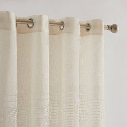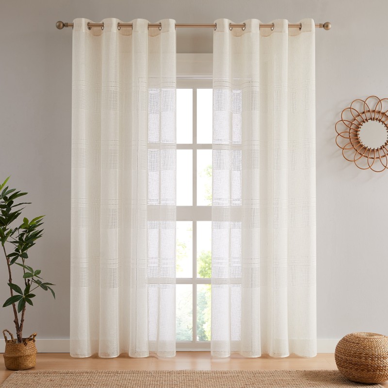 VISILLO RÚSTICO CON UN DISEÑO ELEGANTE Y ATEMPORAL QUE INCORPORA DETALLES DE VAINICA TEJIDA, APORTANDO TEXTURA Y UN ACABADO DECORATIVO SUTIL. SU TEJIDO DE ASPECTO NATURAL PERMITE EL PASO SUAVE DE LA LUZ, CREANDO ESPACIOS LUMINOSOS, CÁLIDOS Y ACOGEDORES.