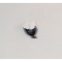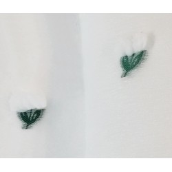 VISILLO DECORATIVO PARA VENTANA DE COCINA CON BORDADO DE PLANTA EN COLOR Y POMPÓN BLANCO, ABRAZADERA A JUEGO